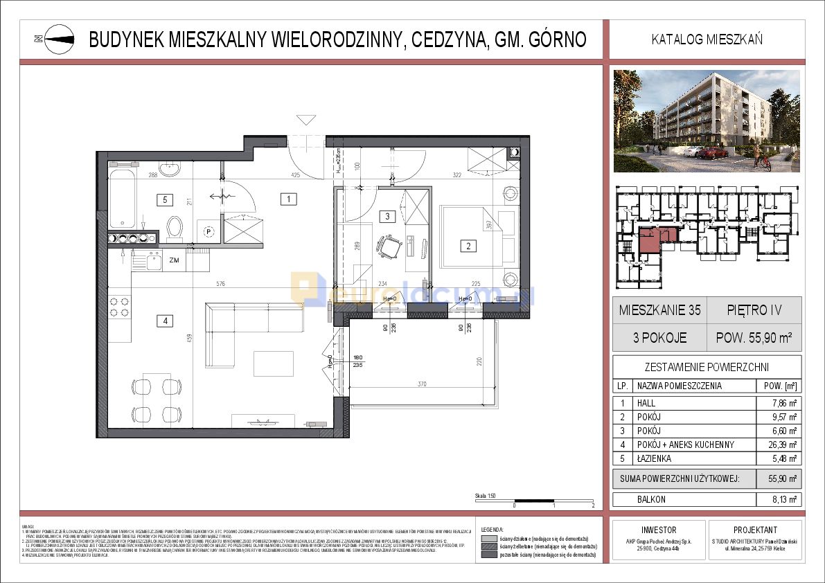 Oferuję do sprzedaży mieszkanie o pow. 55,90 mkw usytuowane na IV piętrze w budynku IV piętrowym z windą.