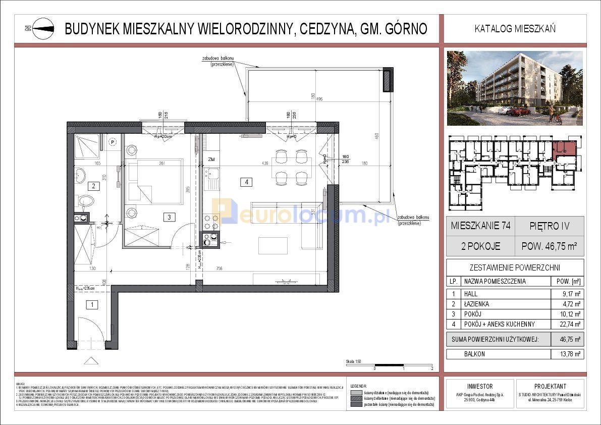 Oferuję do sprzedaży mieszkanie o pow. 46,75 mkw usytuowane na IV piętrze w budynku IV piętrowym z windą.