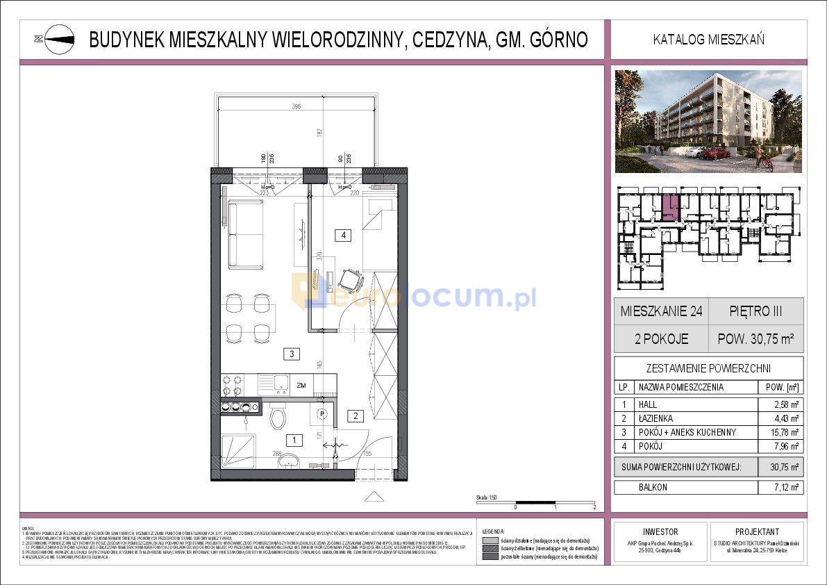 Oferuję do sprzedaży mieszkanie o pow. 30,75 mkw usytuowane na III piętrze w budynku IV piętrowym z windą.